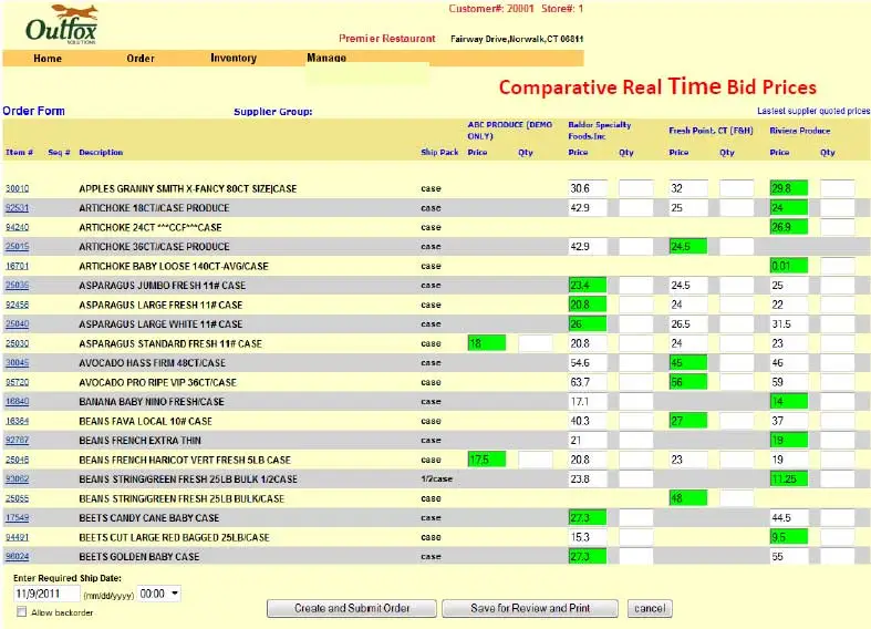 These E-Procurement techniques allow restaurant managers to gain control over their purchasing and reduce their reliance on paper record-keeping. Previous orders are all available for quick look-up and price comparisons.